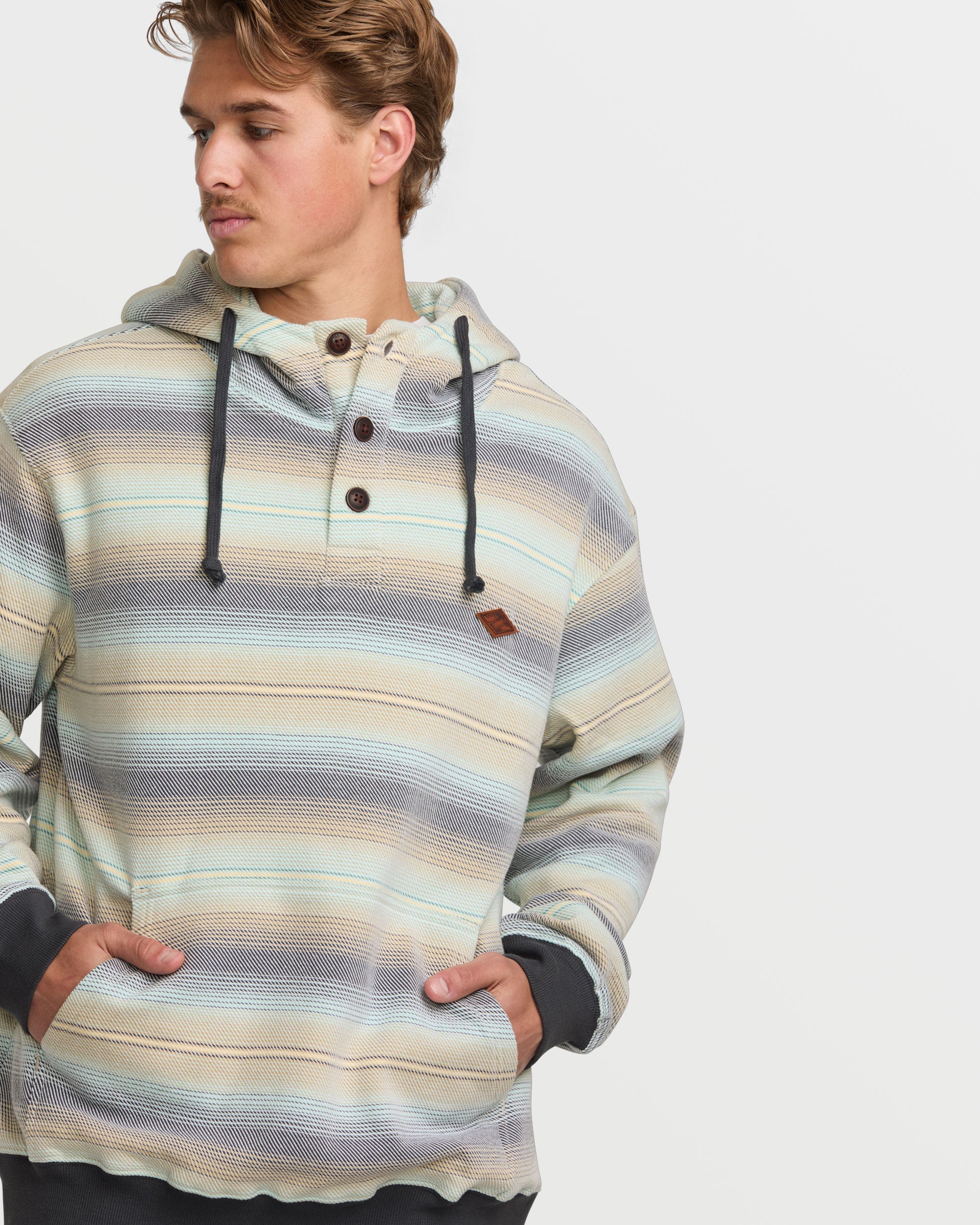 100% cotton ruggedness meets zero-fuss comfort. This pullover sweatshirt features a mid-weight fleece body. 3-button collar. and handy front pocket. Classic styling with a premium leather branding hit. Featured here in the Dune colorway.